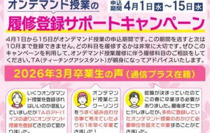 専用のチャットシステムでの指導やZOOMを使った面談を中心に、受講生のライフスタイルに合わせて、夜間・休日にも対応しているので安心です。履修登録時、レポート締切前や、科目終末試験直前など、「今相談できたら…」という希望がかなうのが通信プラスです。