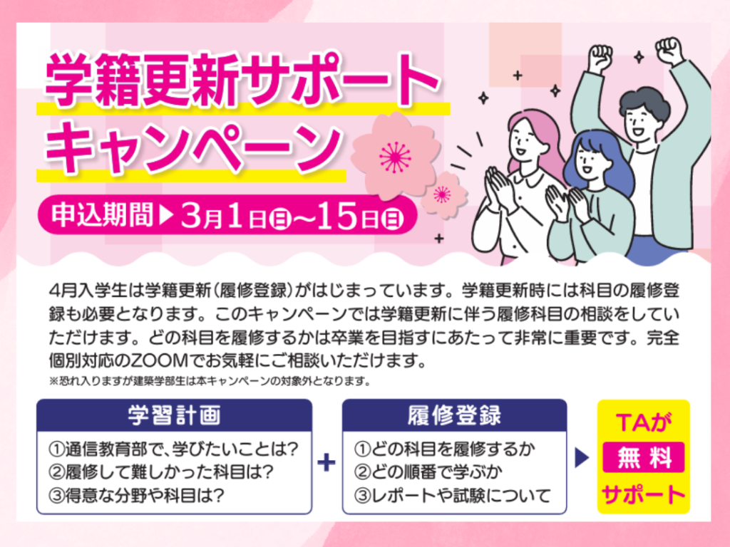 さて、4月入学生は学籍更新(履修登録)が始まっています🌿
